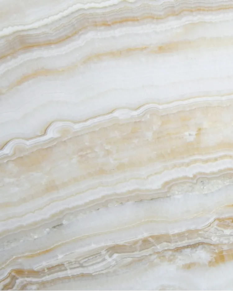В этой партии прекрасно сочетаются белые, бежевые и теплые землистые тона с высокой прозрачностью, которая создает потрясающее сияние. Некоторые изделия выполнены в мягких тонах, в то время как другие имеют яркие коричневые разводы, придающие им смелый характер. Как всегда, каждое изделие из натурального оникса совершенно уникально — нет двух одинаковых, и именно это делает их такими особенными.